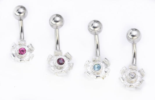 14g 7/16" Jewel & Flower Charm Silver Stranded Belly Button Ring
