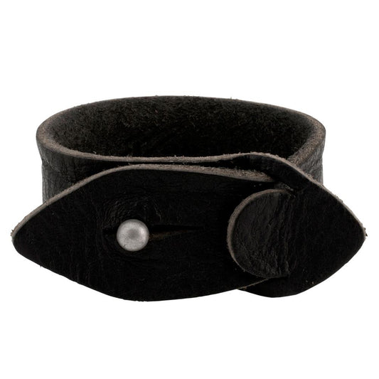 Rocker Laced Black Top Grain Leather Cuff Bracelet