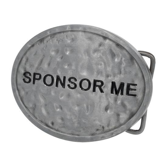 Sponsor Me Phrase Metal Silver Textured Alloy Belt Buckle