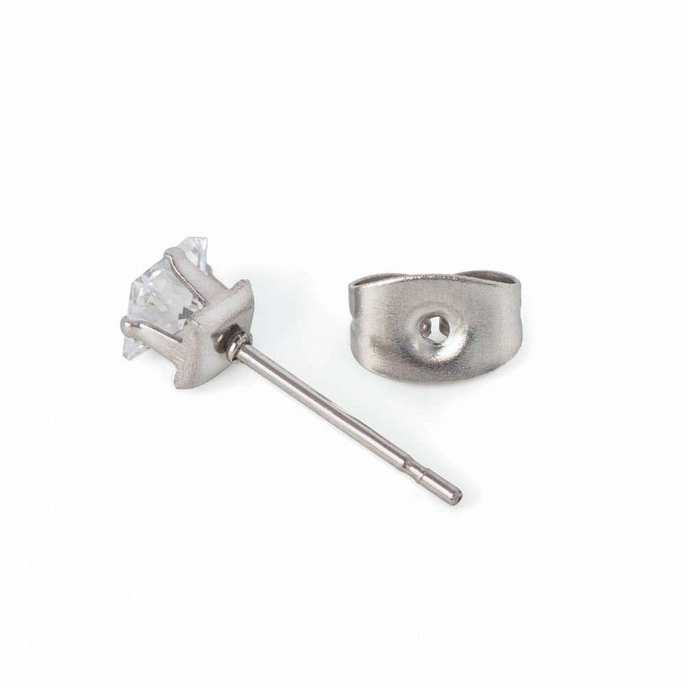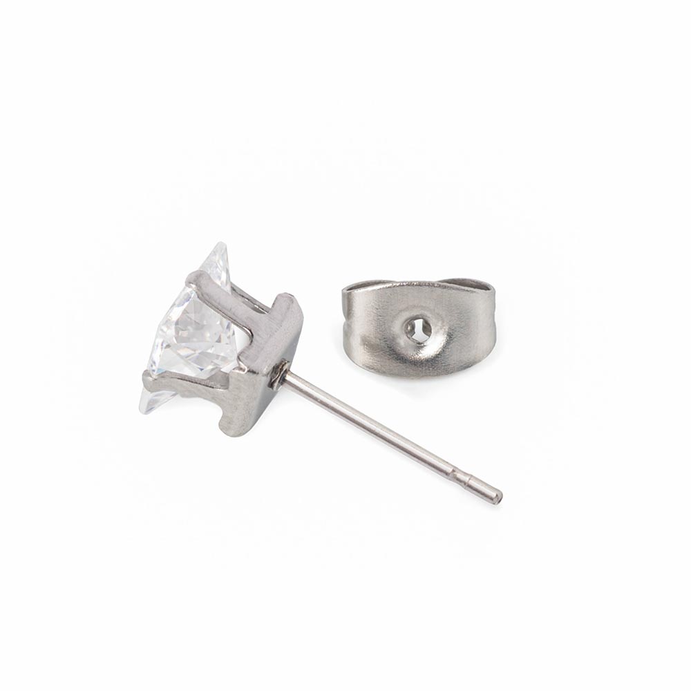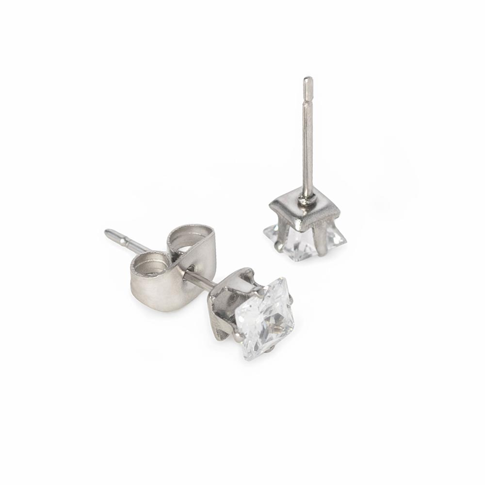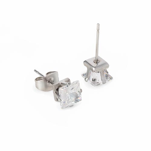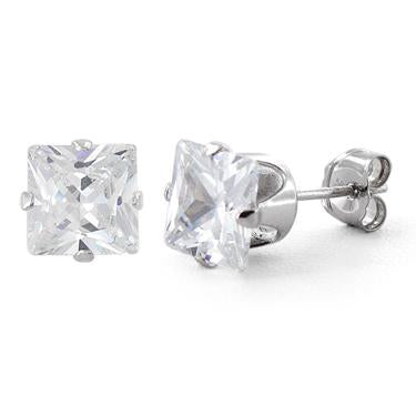Square CZ Stud Prong Set Bling Earrings