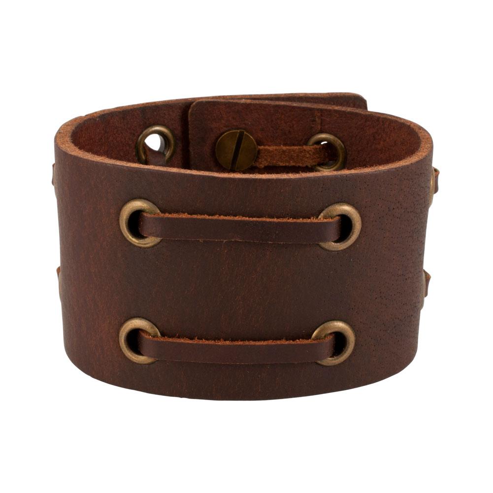 Double Laced Weathered Brown Leather Cuff Bracelet
