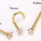 18g Nose BONE, SCREW or FISHTAIL with 2.5mm CZ 24kt gold plated - Price Per 1 316L Steel Base then Plated with 24kt Gold. Jeweled Nostril Jewelry that gives the... Read More