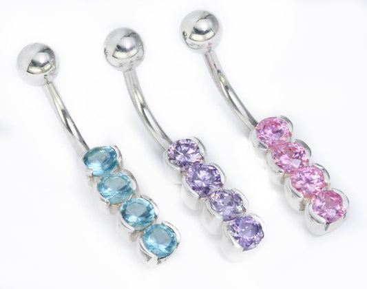 14g 3/8" Sterling Silver 4 Round Gems Belly Jewelry