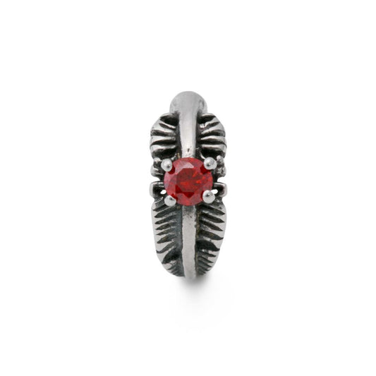 14g 3/8” Dark Red Jeweled Feather Burnished Silver Steel Clicker — Price Per 1