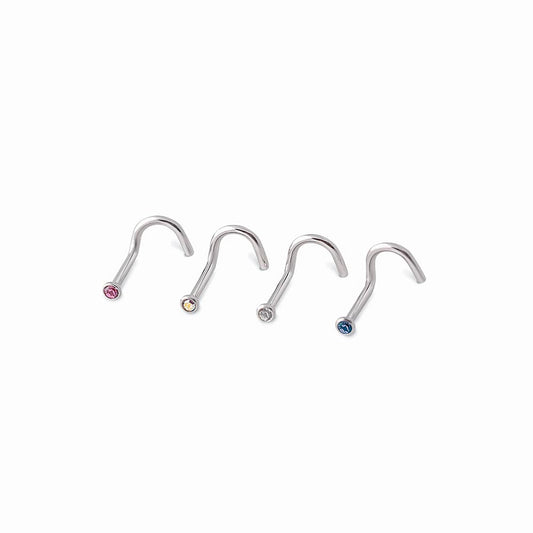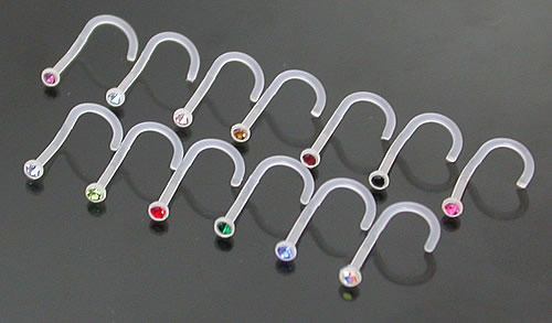 18g BioPlastic Bezel Set Gem Nose Screw Body Jewelry