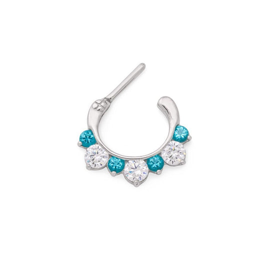 16g Steel Septum Clicker with Three Crystals and Four Colored Jewels — Price Per 1
