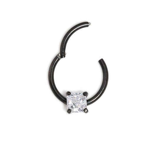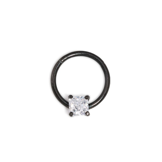 16g Black PVD Septum Clicker with Square Crystal — Price Per 1
