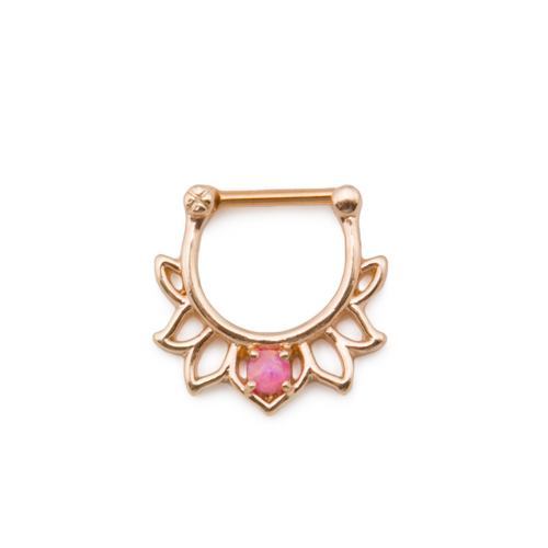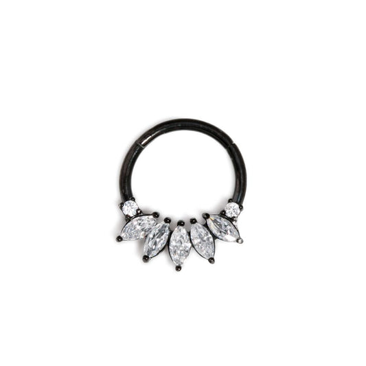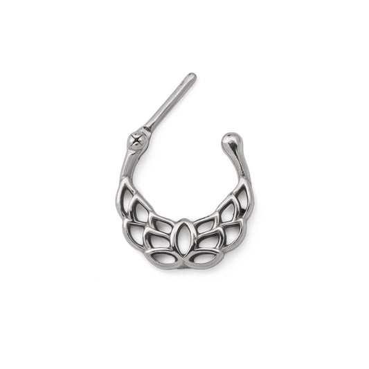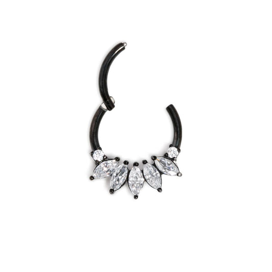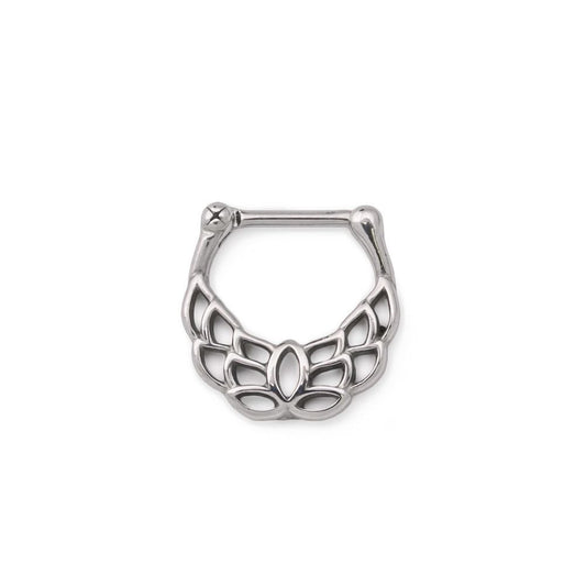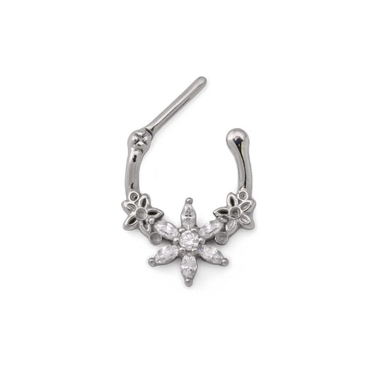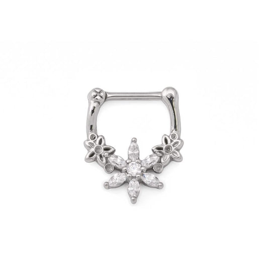 16g Steel Septum Clicker with Crystal-Petaled Trinity Flower Design — Price Per 1