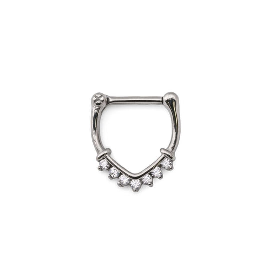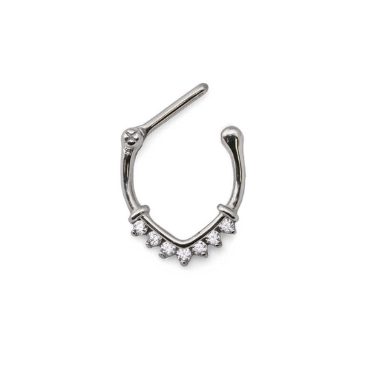 16g Steel Septum Clicker — V-Shaped Ring with Crystals — Price Per 1