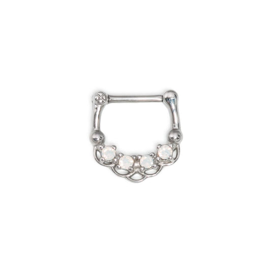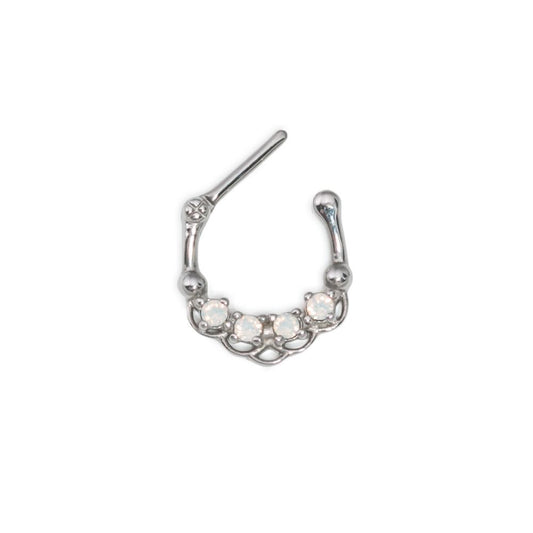 16g Steel Septum Clicker with Five Opals — Price Per 1