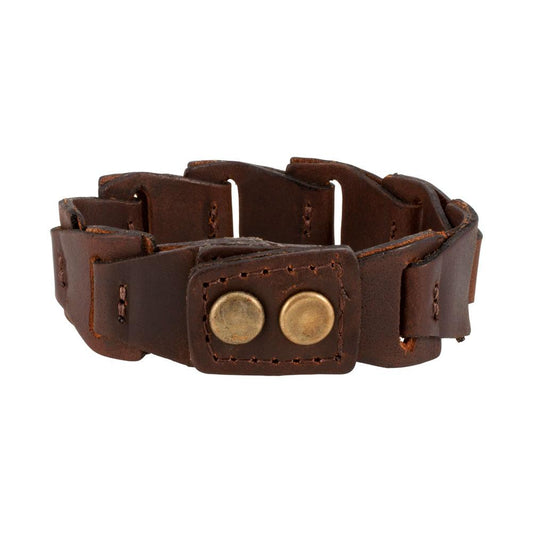 Brown Smooth Leather Link Double Snap Bracelet