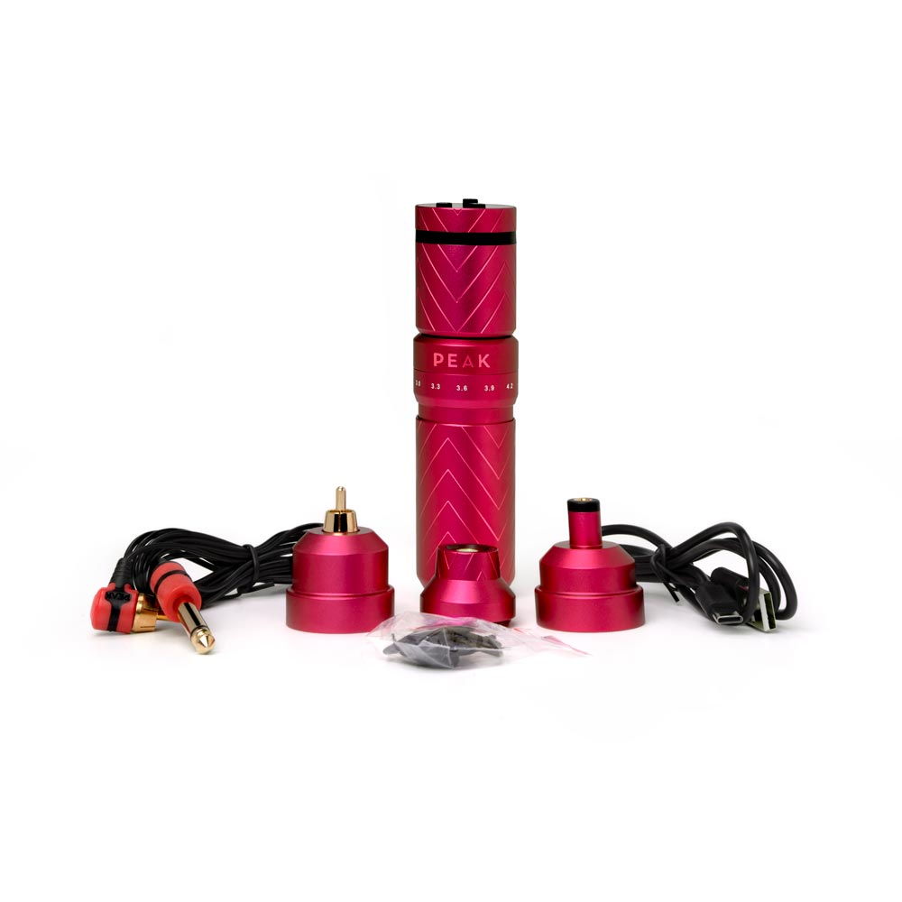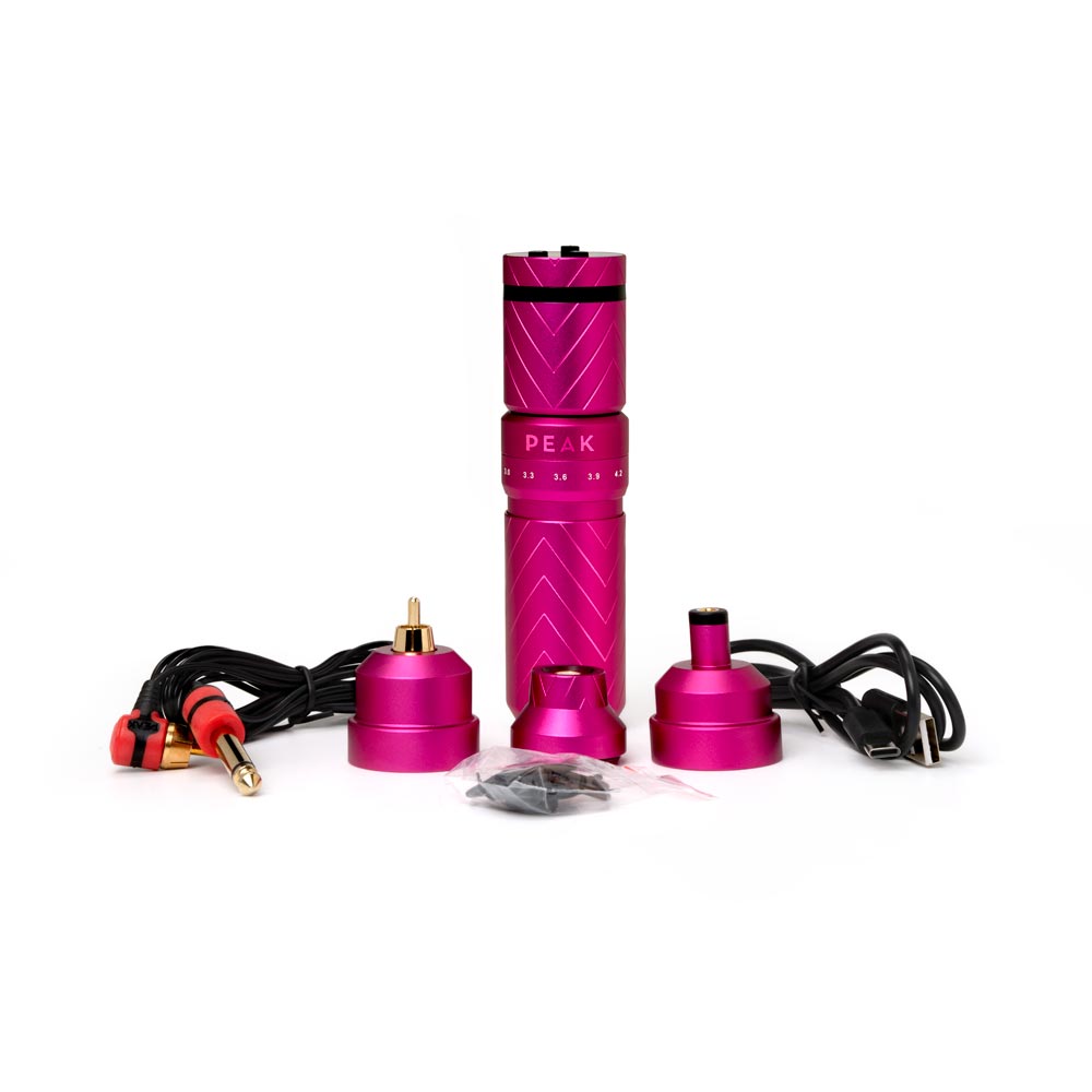 Additionally, the Peak Solice Pro comes with two battery pack converters; these converters turn the included PowerPack battery into a separate battery pack for RCA and 3.5mm input machines; so you can turn your favorite tattoo machine into a wireless powerhouse. The Peak Solice Pro is also compatible with the original Solice PowerPack Batteries.
