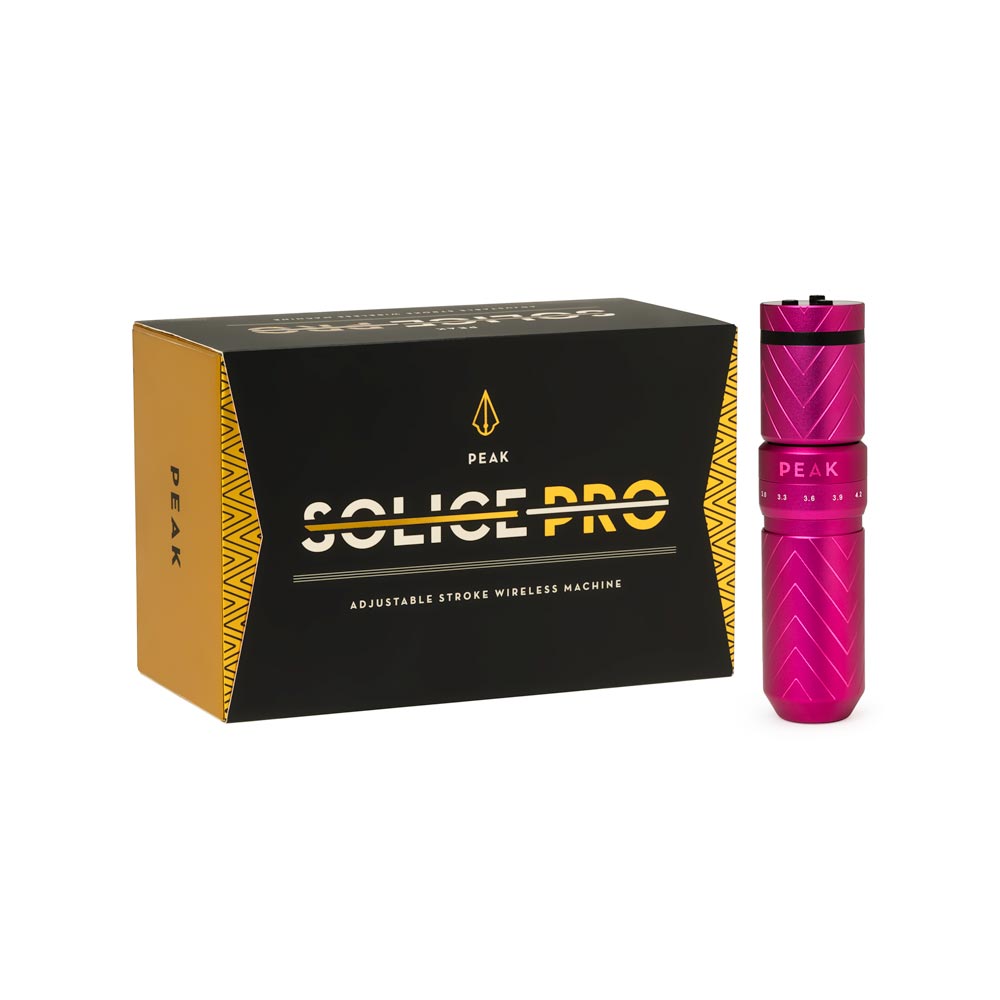 Peak is delivering unbounded artistic freedom with the Peak Solice Pro: a wireless machine that has a fully adjustable stroke. With a simple turn of the stroke adjustment knob, you can adjust your stroke from 2.4mm up to 4.2mm. This makes the Solice Pro a great choice for any tattoo style or technique.
