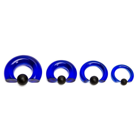 8g-00g Blue Vampire End Glass Captive Bead Ring with Black Silicone Ball