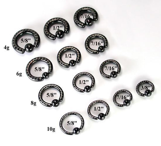14g-6g Techno Tribal Captive Bead Ring with Eight Fiery Indents