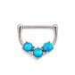 14g Stainless Steel Nipple Ring with Three Opals in Blue or White — Clicker MechanismAdd a little opalescence to your collection of nipple jewelry with this trinity opal-designed nipple clicker.... Read More