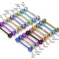 16g Straight Barbell - Titanium Externally Threaded This titanium straight barbell, comes in several lengths, from 6mm (1/4") through 22mm (7/8"), and 18 different color choices. All sizes come with... Read More