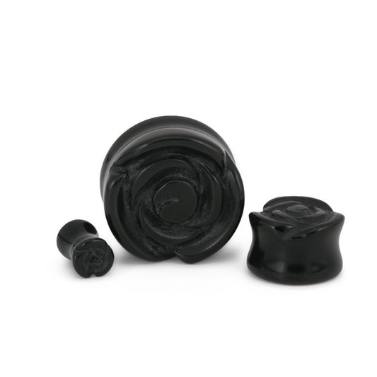 Double Flared Rose Black Glass Stone Plug – Price Per 1