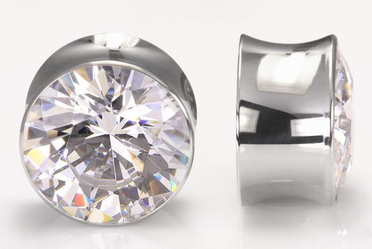 FLAT PLUGS Clear Glass - Ear Gauge Jewelry - Price Per 1
