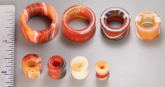 Double Flare Tunnel RED AGATE STONE 0g - 1" - Price Per 1