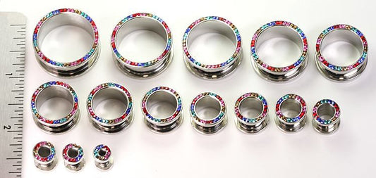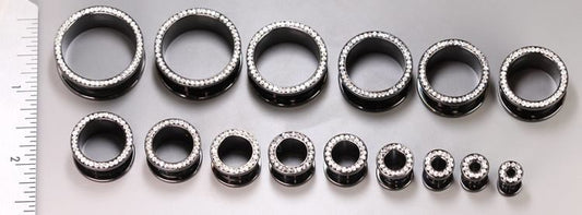 Crystal Jeweled Rim PVD Black Steel Threaded Tunnel — Price Per 1