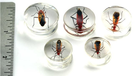 Red Bug or Pyrrhocorid inside an Acrylic Plug for Gauged Ears - 16mm - 24mm - Price Per 1