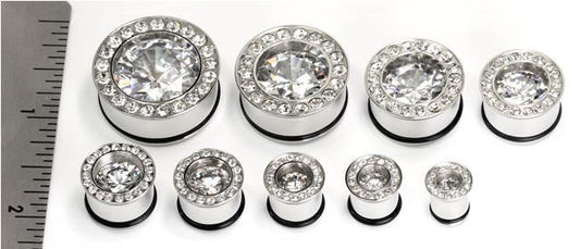 Single Flare BLING Plugs High Polish Steel Ear Jewelry 0g - 1" - Price Per 1