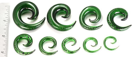 8g - 5/8" Pyrex Glass GREEN Glitter SPIRAL - Price Per 1