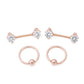 14g PVD Rose Gold Nipple Jewelry Set — Prong-Set Crystal Jeweled Straight Barbells and Captive Bead Rings