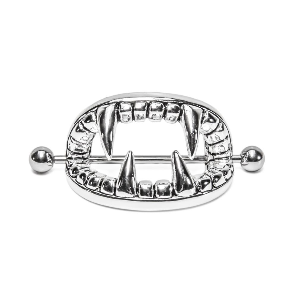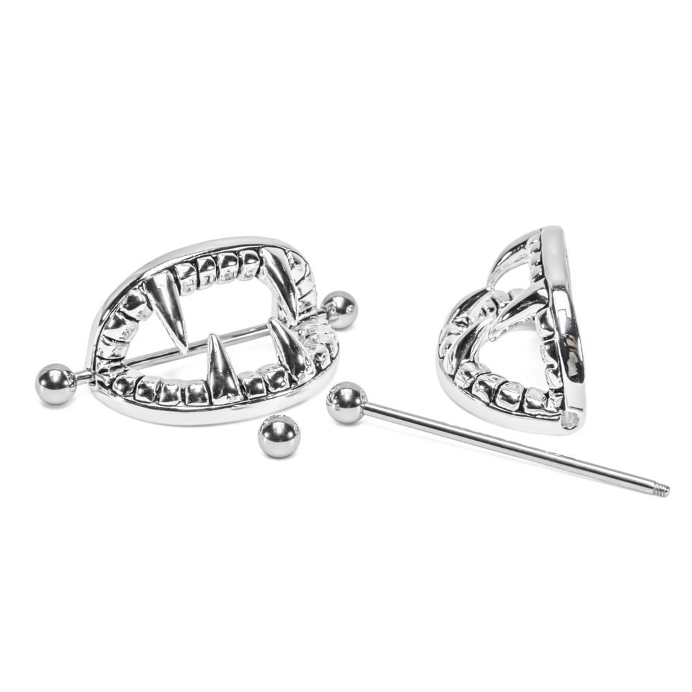 Vampire Teeth Nipple Shield with 14g 1-3/8” (35mm) Straight Barbell – Nipple Jewelry – Price per 1