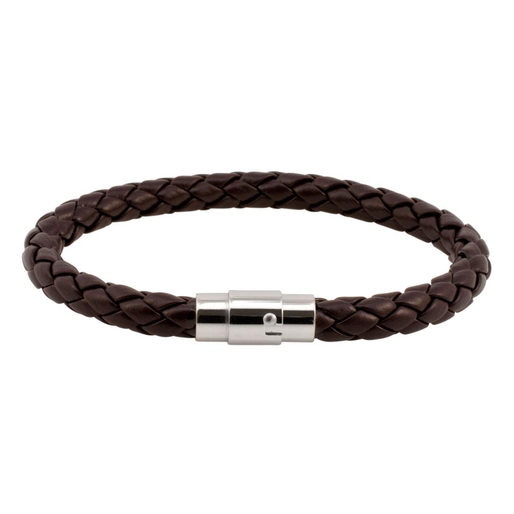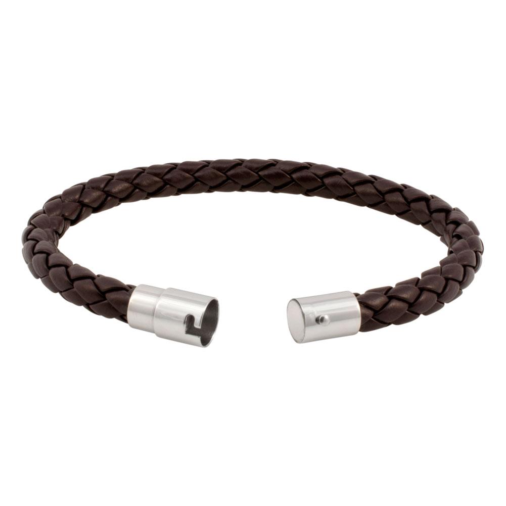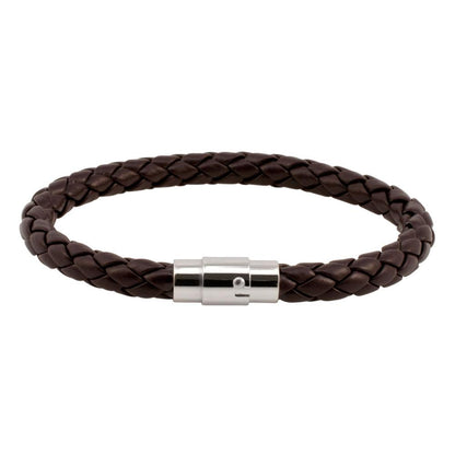 Brown Braided Leather Bracelet with Stainless Steel Clasp