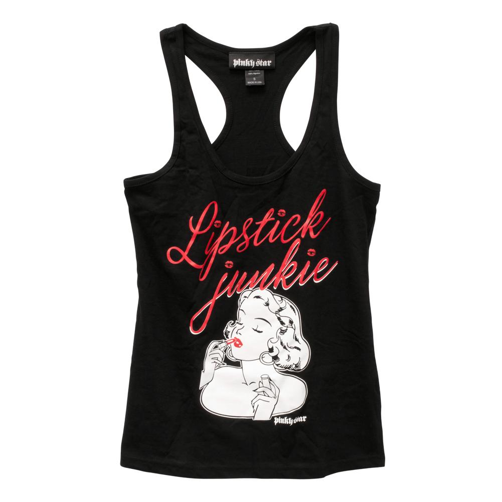 Pinky Star Lipstick Junkie Women's Black Tank Top T-Shirt